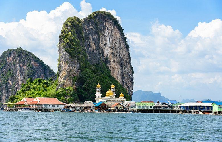 Discover Khao Phing Kan, popularly known as James Bond Island due to its starring role in the movie “The Man with the Golden Gun.” This small-group tour from Phuket takes you into Phang Nga Bay to admire the stunning island and embark on adventures such as canoeing through limestone caves and mangrove forests, exploring giant stalactites, and visiting a Muslim fishing village.