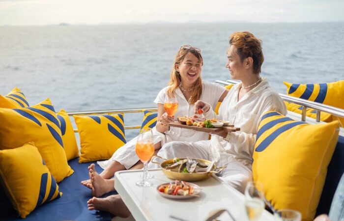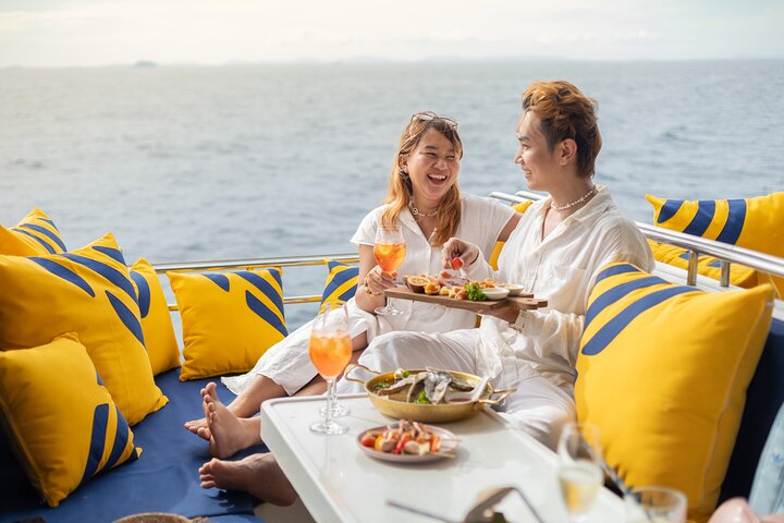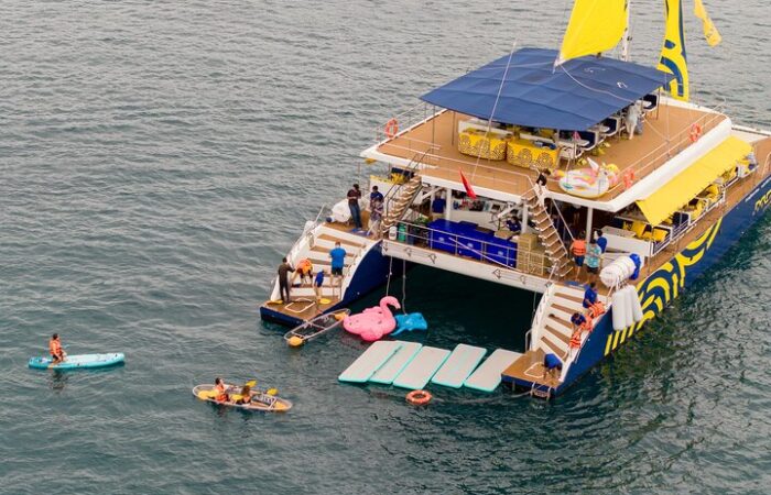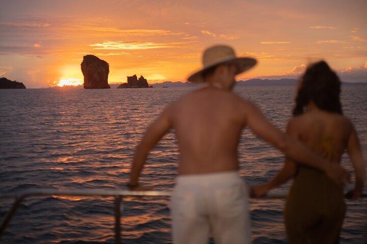 Leave the ordinary behind and dive into a day of pure island magic. Cruise across the Andaman Sea on a luxurious catamaran—its open decks, soft loungers, and sweeping sea views set the stage for adventure. Glide past towering limestone cliffs at Tonsai Bay and drift by emerald islets like Bamboo Island and the legendary Maya Bay, made famous by Hollywood. Jump into crystal-clear lagoons, snorkel with vibrant marine life, and paddle through hidden coves that feel like a dream. As golden hour lights up the sky at Chicken Island, the energy shifts—music rises, lights glow, and the party begins under a canvas of stars. Whether you’re traveling solo, with a partner, family, or friends, this is the ultimate way to experience Phi Phi. You don’t have to believe the hype—come see it for yourself.